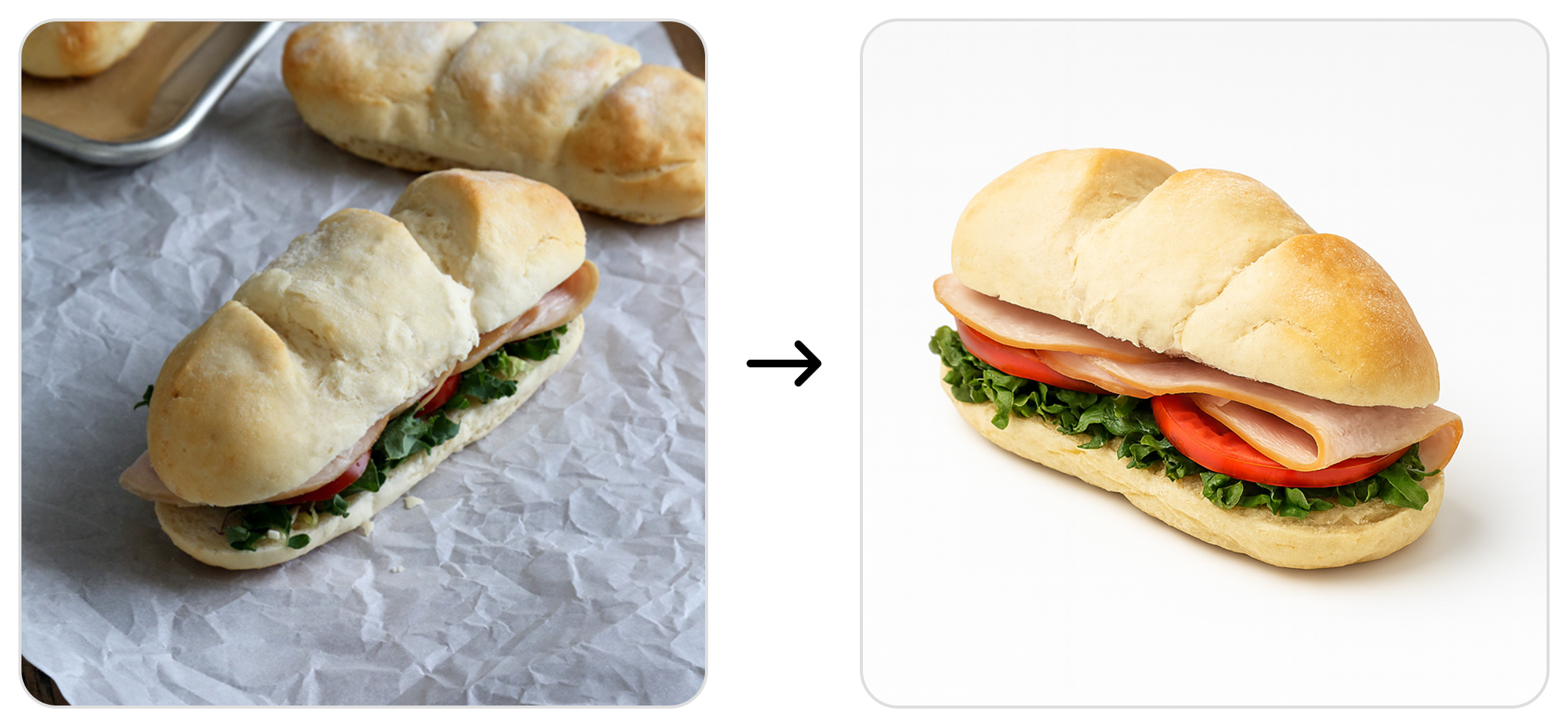 Transform your own images into consistent studio shots. Simply upload, generate, and done!