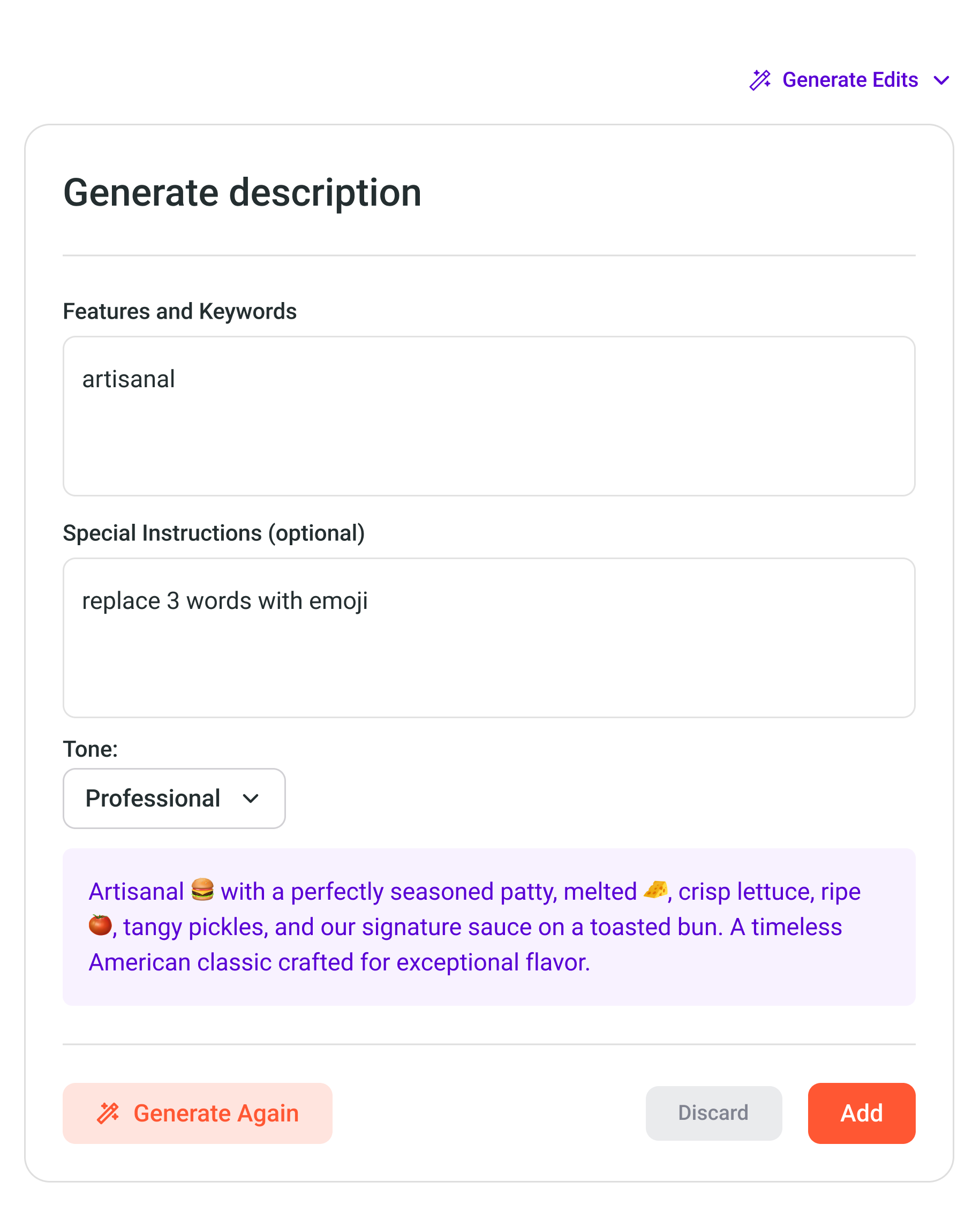 Expand brief descriptions with rich, appetizing details that showcase your items and drive orders